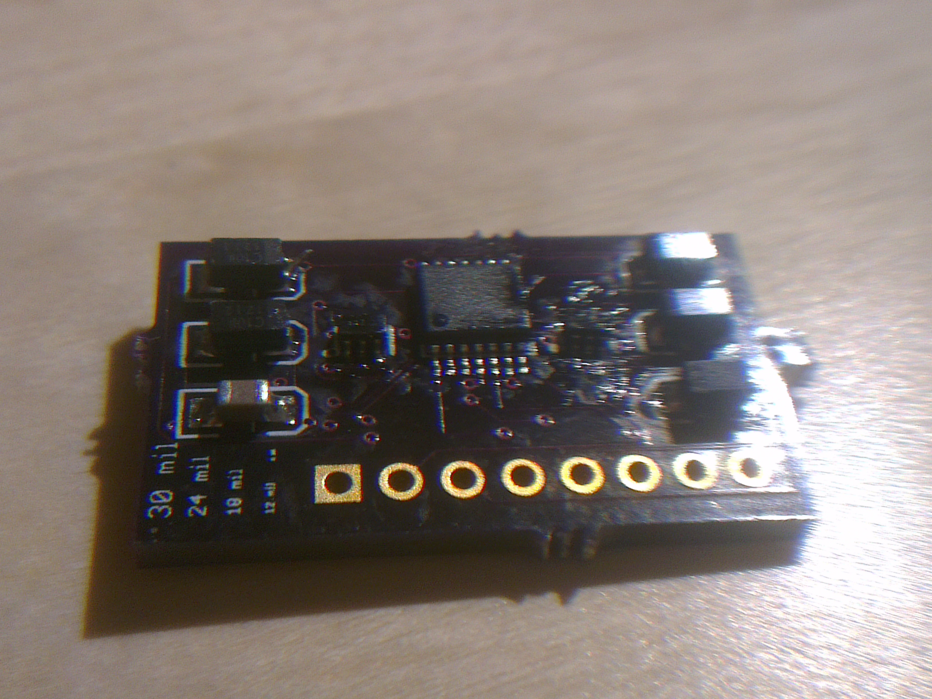 I can’t really see how good the joints on the TSSOP parts are, but doing some simple multimeter-based testing seems to show that things are connected fine. So I went on to the top side of the board: