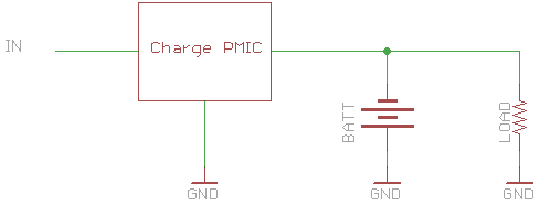 But the question is, is this safe? It seems to me like it should be, but with lithium batteries I don’t want to take anything for granted. Surprisingly, I haven’t found any sources online saying whether it is or isn’t. There are plenty of people who offer complicated schematics, and I can come up with explanations for why they might be better, but I haven’t seen any explanations of why the easier option isn’t sufficient. One reason the complicated options are better is, for example, is if you connect the input voltage directly across the load (and use a transistor to control whether the battery is connected to the load), this lets you use the full capacity of the charger for the battery, while still powering the load (in the simpler design, the charge current is split between the battery and the load, increasing charge times). This doesn’t seem like a huge drawback for my use case, though, since recharging time isn’t the most critical.