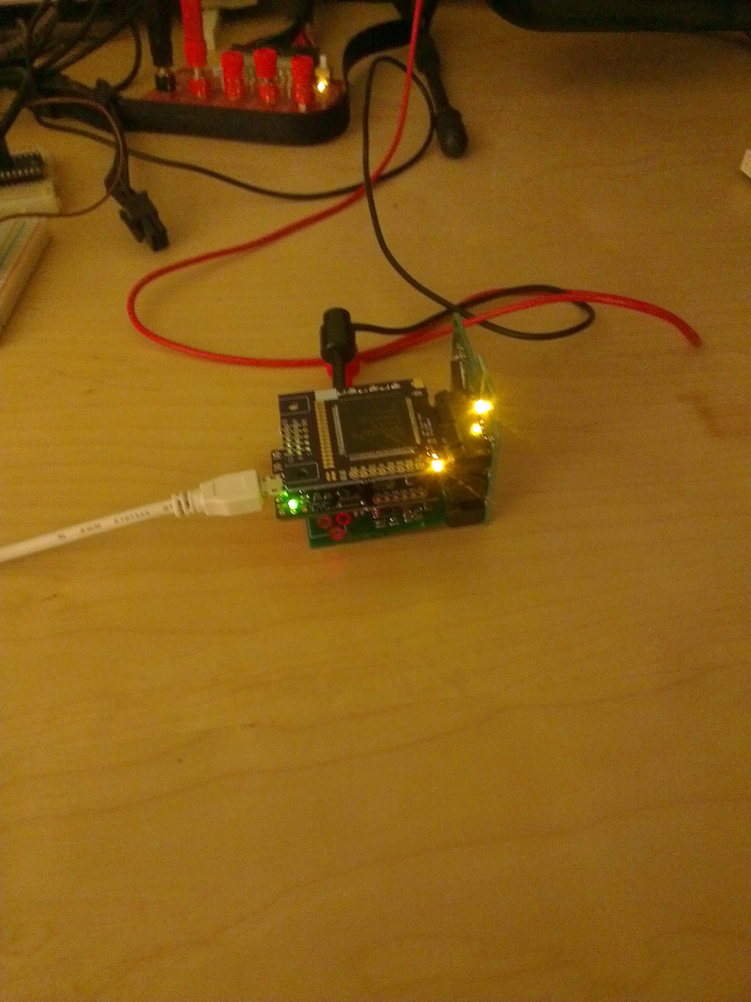 Well, I finally sort-of accomplished one of my original goals: designing and building a custom FPGA board. The reason it took a while, and somewhat separately also the reason I can’t use it very much, are both due to JTAG issues. Here’s a picture in all its low-res glory: